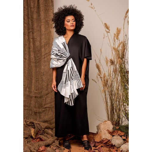 Black One Sided Draped Shoulder Kaftan