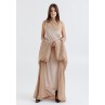 Peach Velvet One Shoulder Dress & Beige Bisht
