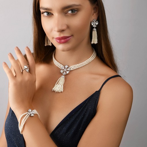 • A complete symphony of elegance—this set features luminous pearls and delicate tassels, embodying the timeless allure of the night, perfect for adding radiant sophistication to every occasion.