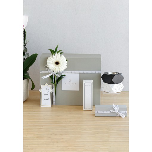 • Gift box including Duo mubkhar featuring a place to store bokhour and VIP Indian bokhour box and our signature Velvet perfume. Wrapped in a gift box with beautiful flower arrangement.