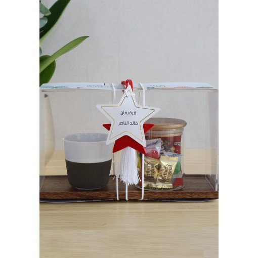 • A glass jar filled with assorted chocolates, all beautifully presented in a premium acrylic gift box with a festive Gargean-inspired design.