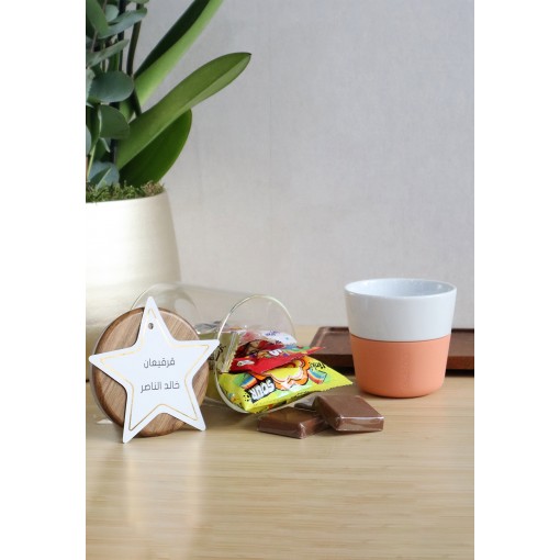 • A 230ml porcelain cup with a removable cantaloupe silicone sheath.