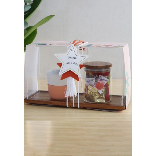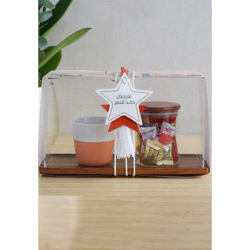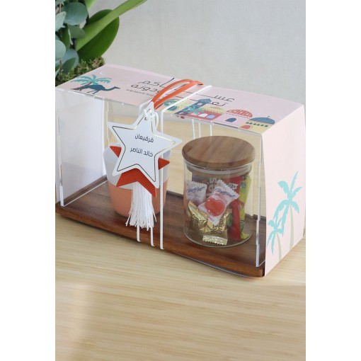 • A glass jar filled with assorted chocolates, all beautifully presented in a premium acrylic gift box with a festive Gargean-inspired design.