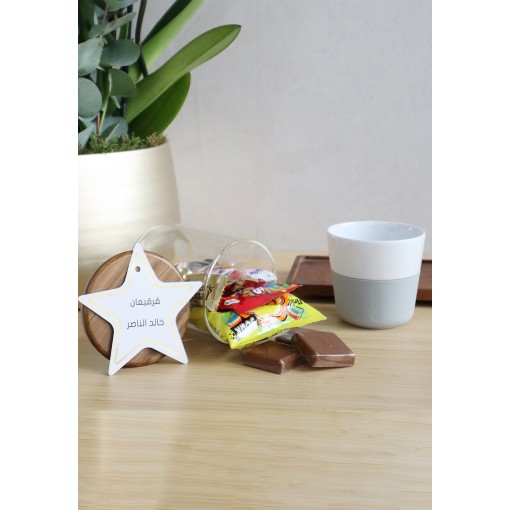 • A glass jar filled with assorted chocolates, all beautifully presented in a premium acrylic gift box with a festive Gargean-inspired design.