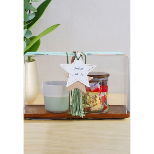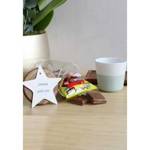 • A glass jar filled with assorted chocolates, all beautifully presented in a premium acrylic gift box with a festive Gargean-inspired design.
