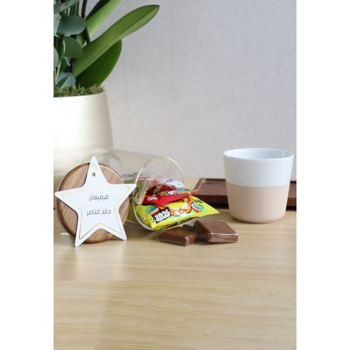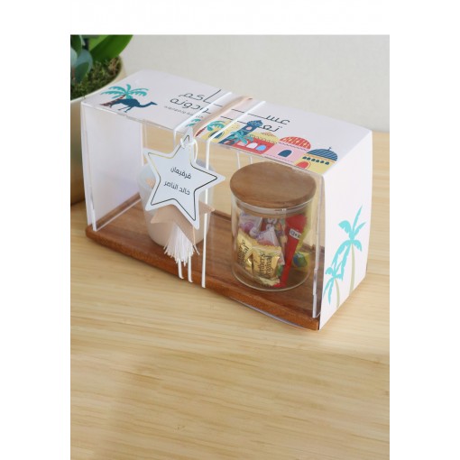 • A glass jar filled with assorted chocolates, all beautifully presented in a premium acrylic gift box with a festive Gargean-inspired design.