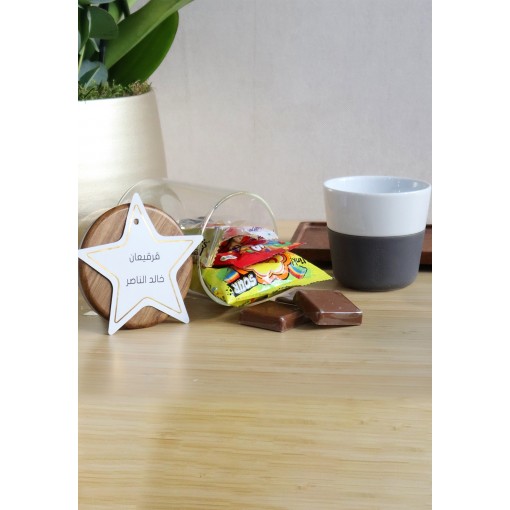 • A glass jar filled with assorted chocolates, all beautifully presented in a premium acrylic gift box with a festive Gargean-inspired design.
