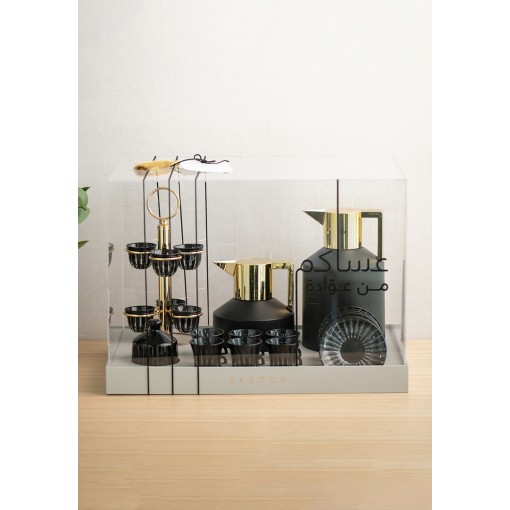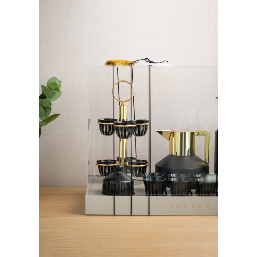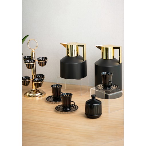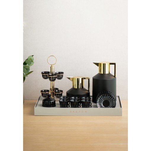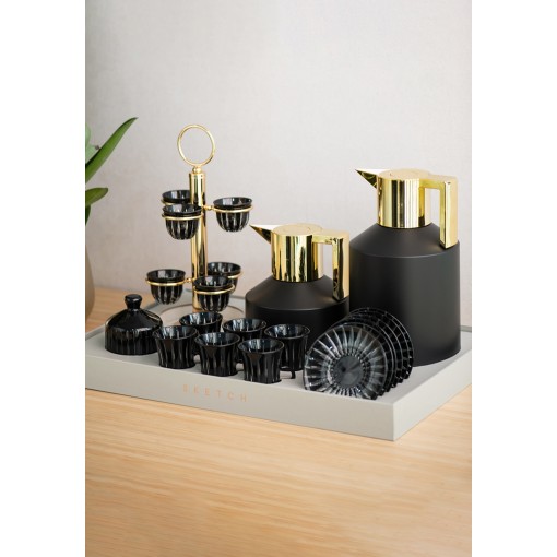 • A bold hospitality set that pairs modern design with striking black and gold accents, created for refined tea and coffee serving.