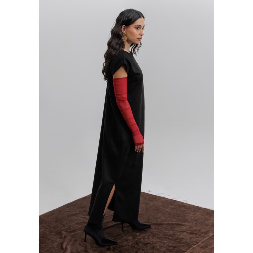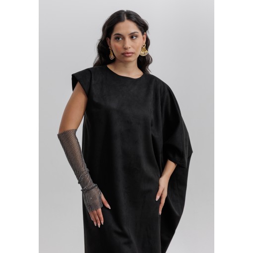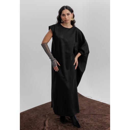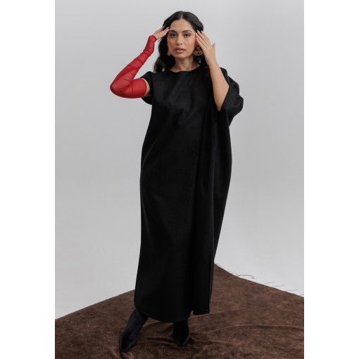 Black Suede Kaftan with Gloves Set