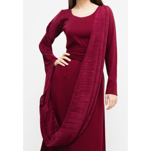 • Contemporary crepe kaftan with pleated attached sleeves