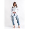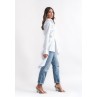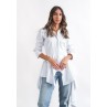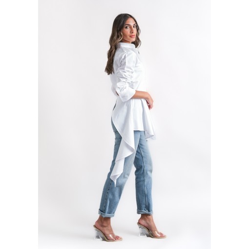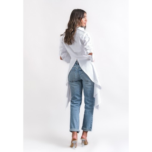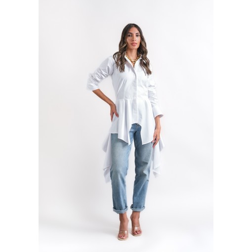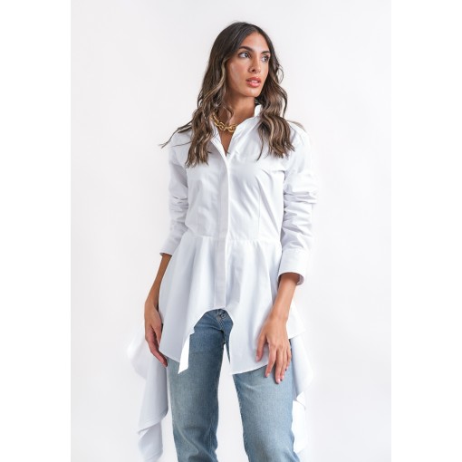• white shirt with asymmetric hem.